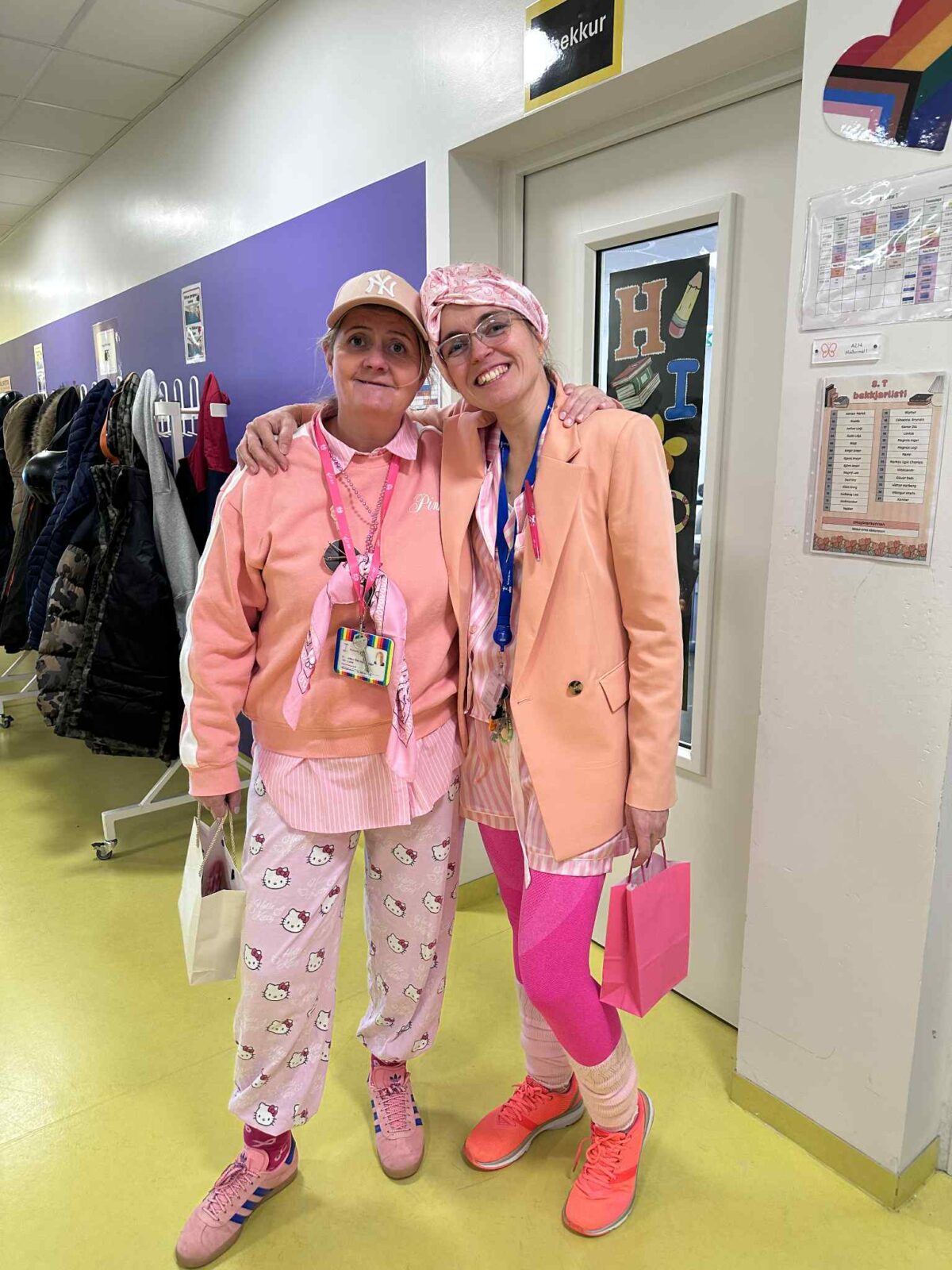 Haldið var upp á bleika daginn í Skarðshlíðarskóla.