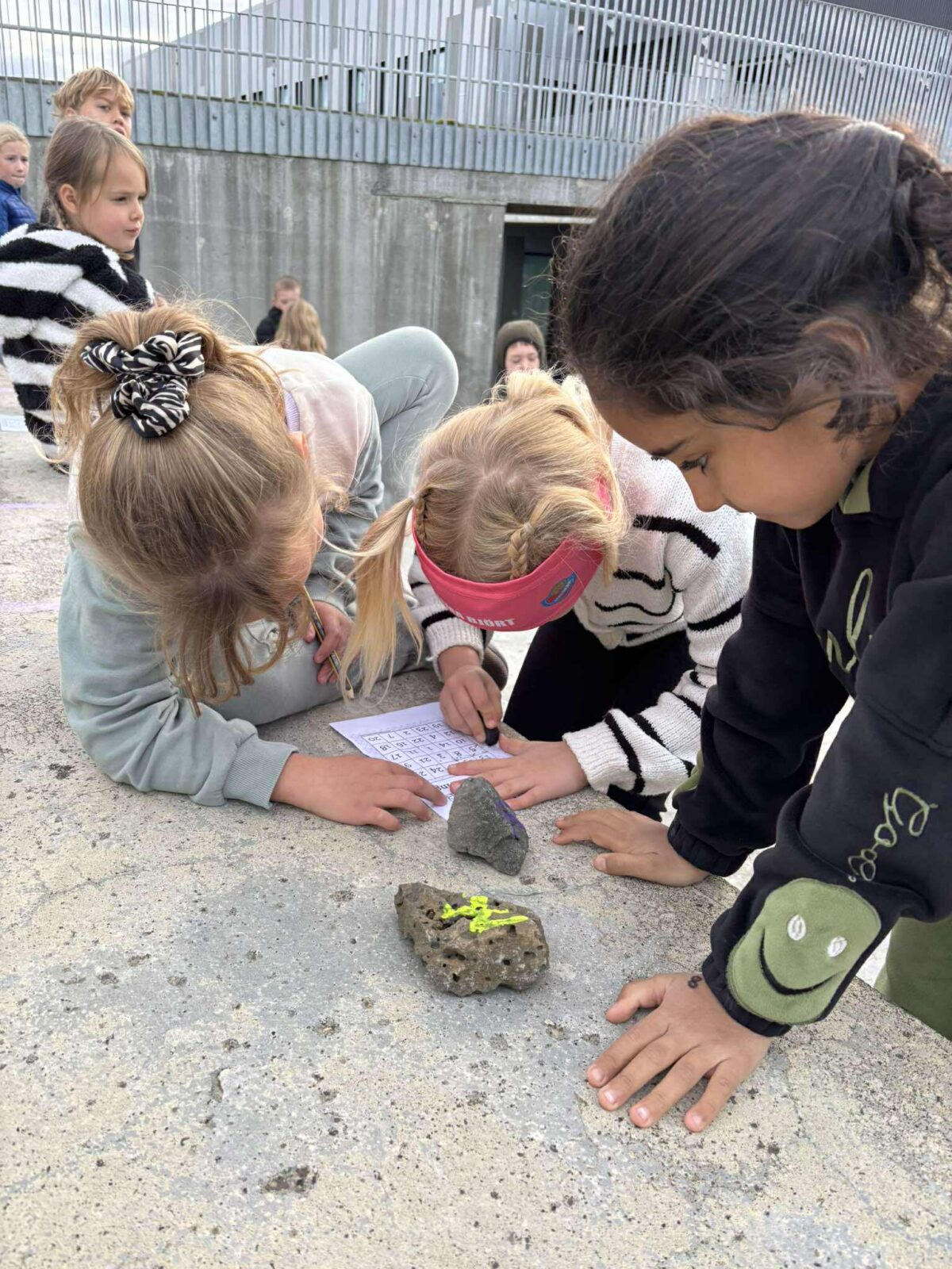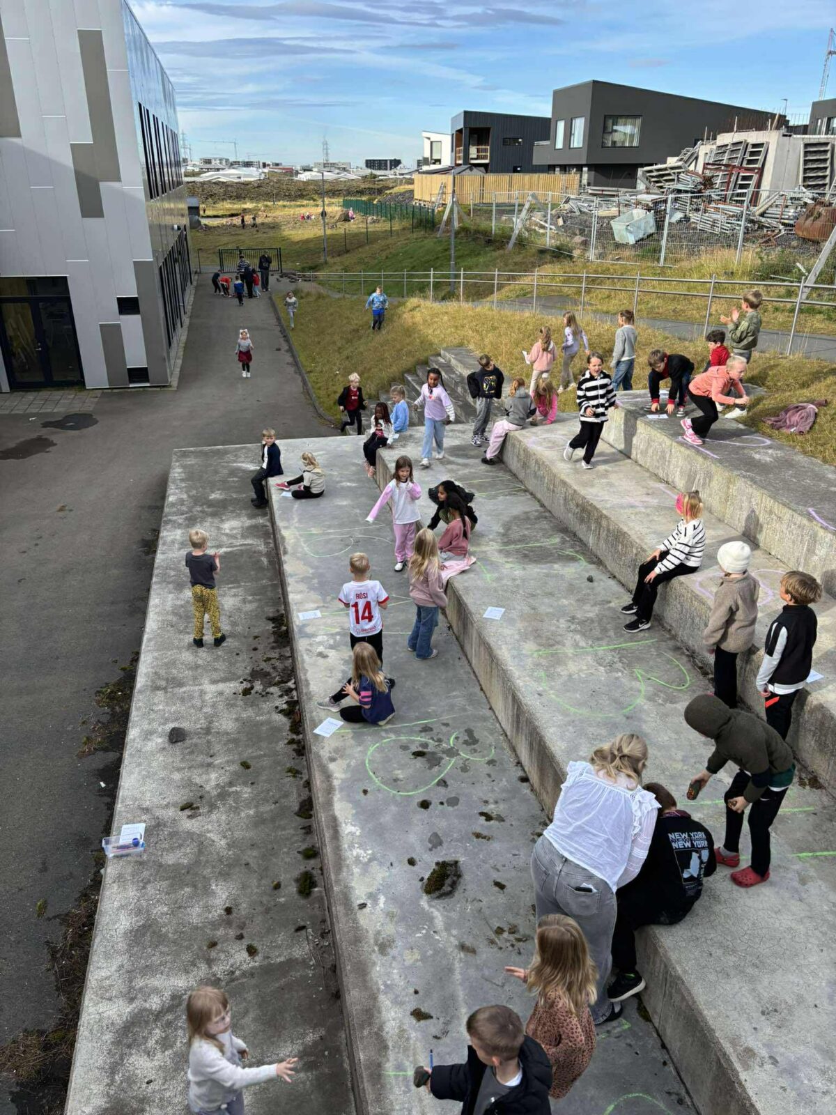 Í stærðfræði hjá 2.bekk var frábæra haustveðrið nýtt til fulls og farið út í steinabingó. Nemendum var skipt upp í þriggja manna lið, fengu bingóspjald, skiptust á að hlaupa og leggja saman númerin á steinunum til þess að fá bingó. Þetta var ekki bara góð æfing í samlagningu heldur líka frábær hreyfing, skemmtileg útikennsla og æfing í félagsfærni. Stemningin var í hæstu hæðum og allir skemmtu sér mjög vel. Deila Tísta